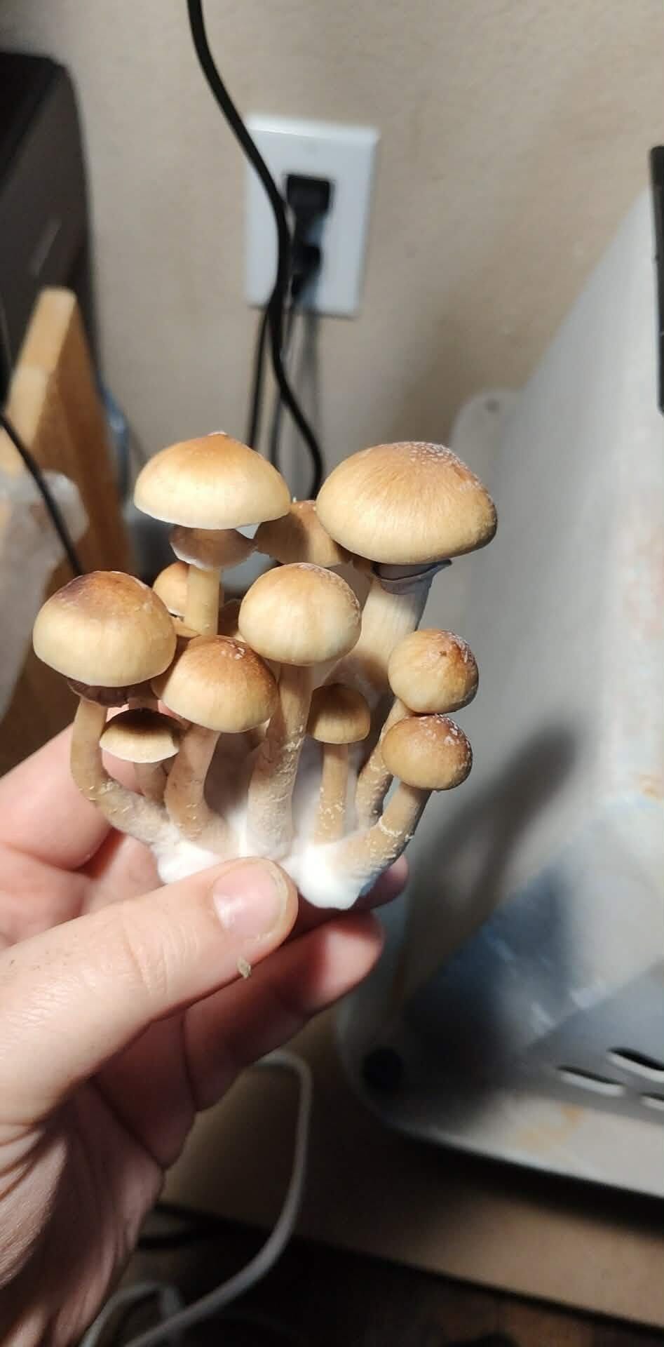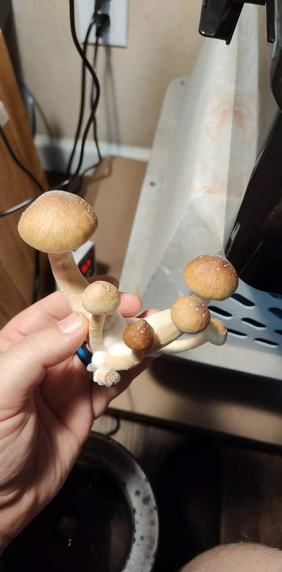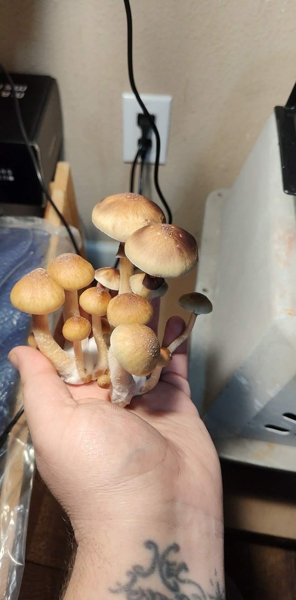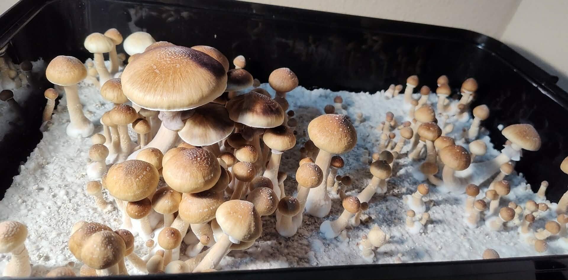 Only took 2wks to fully colonize and another 2wks to grow what you see from my first harvest. Definitely the biggest and thickest stalks I've ever seen. I would almost say this is beginner friendly as easy as it was to grow. Didn't even need my humidifier but I live in a very humid area.